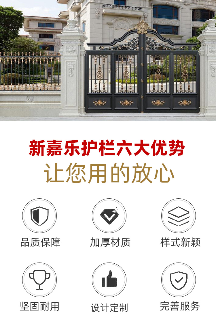 洛陽(yáng)市洛龍區(qū)新嘉樂(lè)護(hù)欄位于洛陽(yáng)市洛龍區(qū)是一家主營(yíng)各類(lèi)護(hù)欄及電動(dòng)伸縮門(mén)、停車(chē)場(chǎng)系統(tǒng)、門(mén)禁系統(tǒng)的企業(yè)。一直致力于提供高質(zhì)量、具有競(jìng)爭(zhēng)力的鋁藝產(chǎn)品。我們的產(chǎn)品范圍涵蓋鋁藝護(hù)欄、鐵藝鋁藝大門(mén)、電動(dòng)伸縮門(mén)、停車(chē)場(chǎng)系統(tǒng)、車(chē)牌識(shí)別、升降柱等,產(chǎn)品廣泛應(yīng)用于個(gè)人單位建筑、市政、交通、園林等領(lǐng)域。